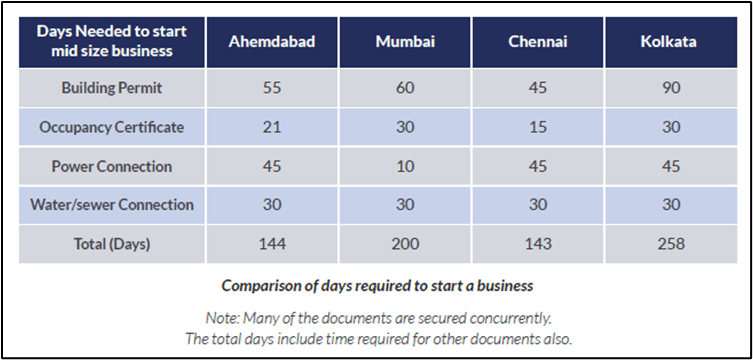 - In 2011, the days required to start a mid-size business were starkly high in Kolkata when compared with other Indian cities.[46]