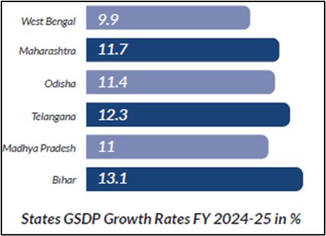 - Official publications of the Government of West Bengal emphasise nominal expansion in Gross State Domestic Product (GSDP) and revenue mobilisation. The West Bengal Economic Review 2024-25 reports that nominal GSDP rose to approximately ₹18-20 lakh crore by 2024-25, alongside increases in own-tax revenue and capital expenditure. While these figures indicate scale expansion, they offer limited insight into relative economic performance, which is more relevant for assessing structural improvement.
