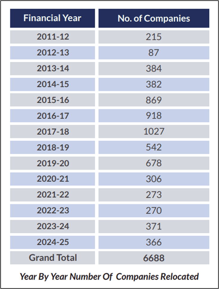 - Corporate mobility data reinforce this assessment. Official parliamentary disclosures by the Ministry of Corporate Affairs indicate that between 2011 and 2025, over 6,600 companies relocated their registered offices out of West Bengal[19] While the state simultaneously recorded an increase in new firm registrations, the sustained outward migration of existing firms, typically more capital-intensive and employment-generating, points to net erosion of the established industrial base rather than renewal. This trend stands in contrast to states such as Telangana and Gujarat, which experienced net inward firm movement over the same period.