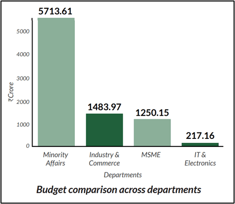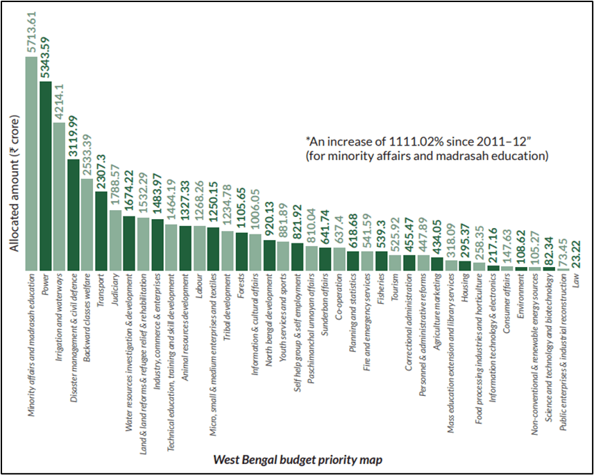 - The Debt Trap: West Bengal’s committed expenditure (salaries, interest on debt, and pensions) eats up a major part of its total revenue receipts. When a government spends that much just to survive, it cannot invest in capital formation. This explains the massive disparity between the Minority Affairs budget and the Industry budget.