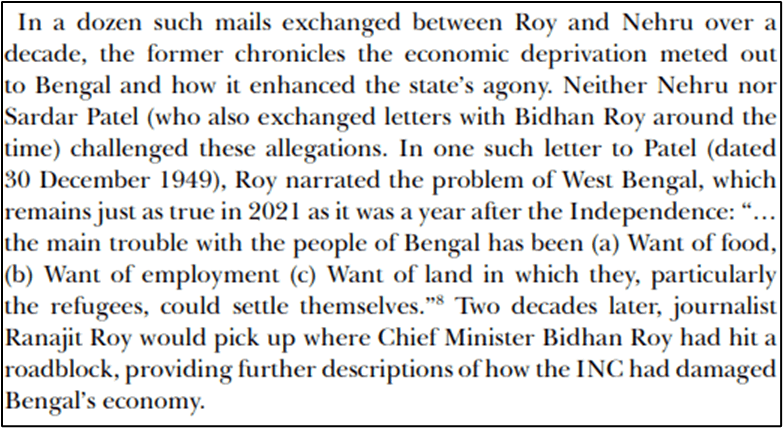 - Refugee rehabilitation grants were deemed ‘insignificant’ compared to West Pakistan allocations. Bidhan Chandra Roy, a personal physician to Gandhi and Nehru, objected repeatedly but in vain. These policies, Ranajit Roy later argued in The Agony of West Bengal (1971), deliberately repositioned eastern India as a labour reservoir rather than an industrial core.[7]